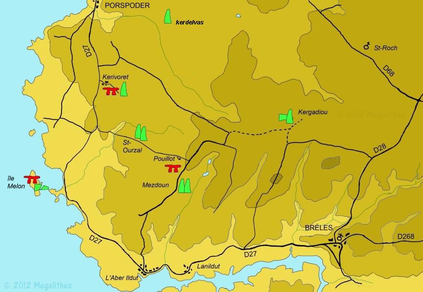 Carte des mégalithes de la région de Porspoder